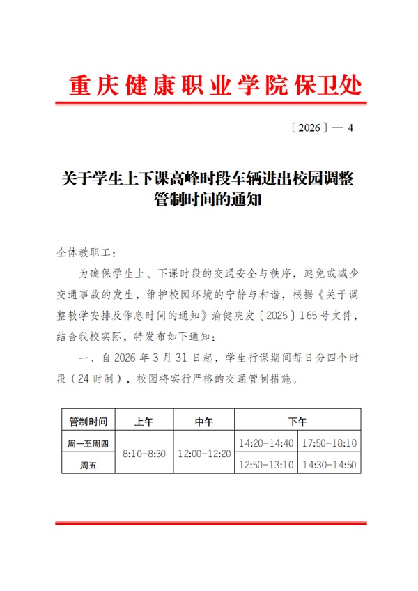 关于学生上下课高峰时段车辆进出校园调整管制时间的通知